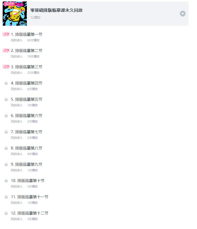 免费资源网平面设计2021-10-27 【风的诗人】版式临摹课2021年的课已完结【画质高清】 感谢会员的分享,画质高清 平面基础 平面教程 平面设计 版式临摹 版式设计 风的诗人 本站所有课程资源均为用户上传,如有侵权,请联系邮箱提供相应材料,我们会尽快删除免费资源网 » 【风的诗人】版式临摹课2021年的课已完结【画质高清】