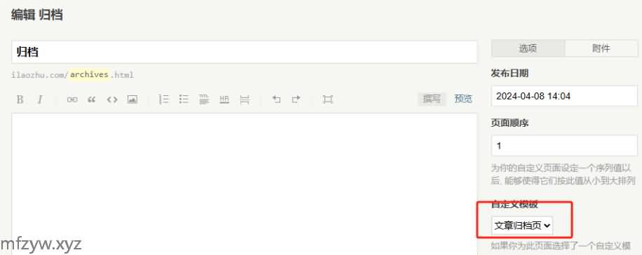 中选择文章归档页面模板