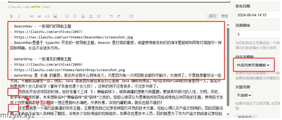 主题中实现了一个作品列表页面模板,可在添加友情链接独立页面