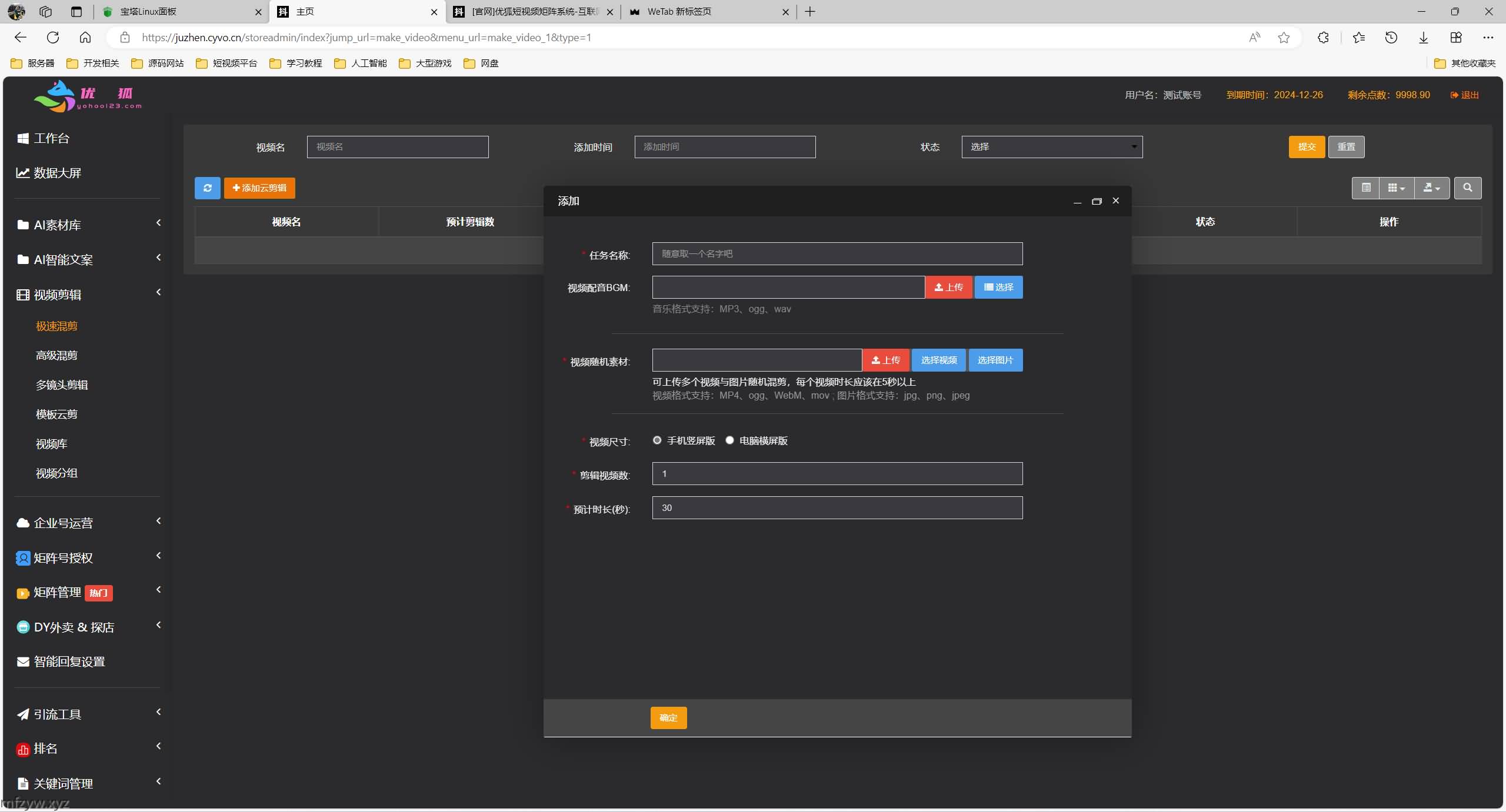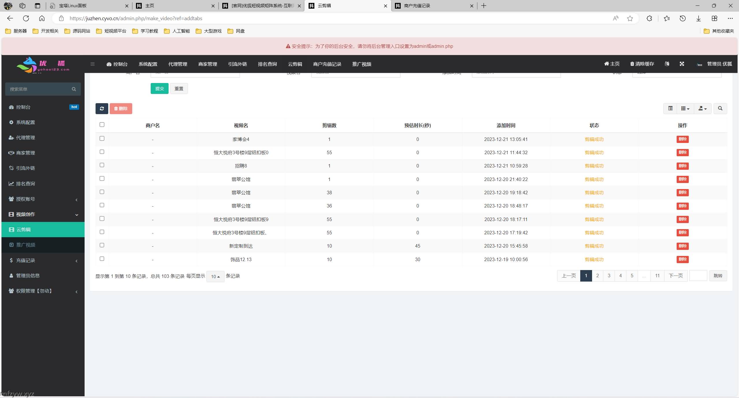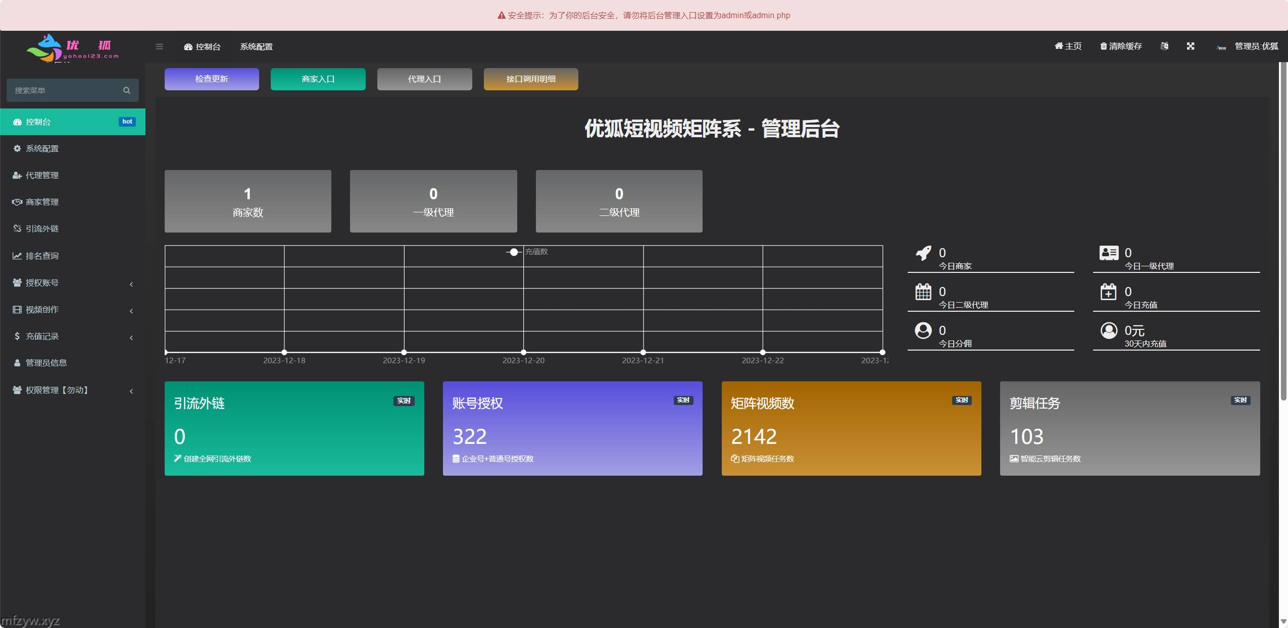 矩阵营销系统多平台多账号一站式管理,一键发布作品。智能标题,关键词优化,排名查询,混剪生成原创视频,账号分组,意向客户自动采集,智能回复,多账号评论聚合回复,免切换,免登陆发布….助力您在这个赛道快起步速追赶强获益。管理后台admin.php,商户后台store.php,代理后台agent.php