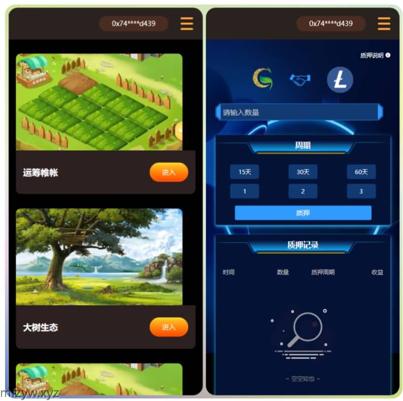 一款运营级别的bsc链游系统,系统附带区块链游戏、质押理财、nft购买功能