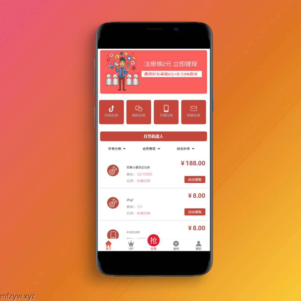抖音在线点赞任务发布接单运营平台PHP网站源码 多个支付通道 分级会员制度