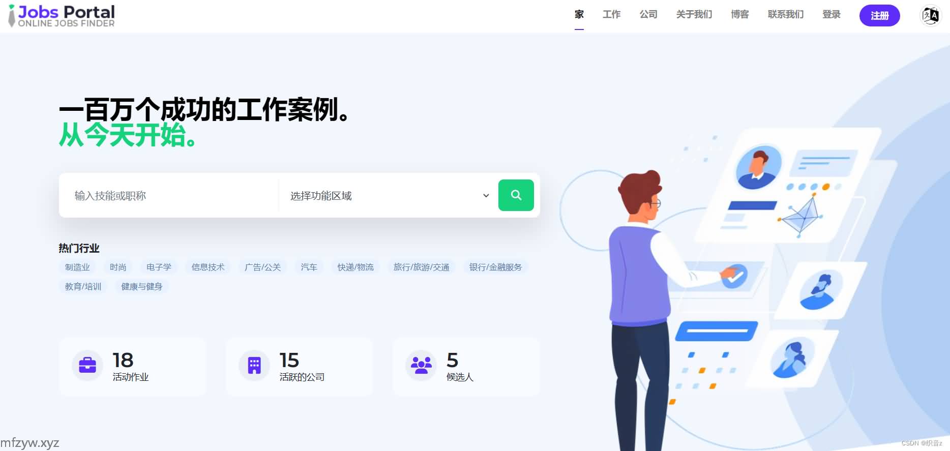 Jobs Portal 求职招聘系统 是为求职者和公司发布职位而开发的交互式求职招聘源码。它使求职者能够发布简历、搜索工作、查看个人工作列表。它将提供各种公司在网站上放置他们的职位空缺资料,并且还可以选择搜索候选人简历。除此之外,还有一个管理模块供客户更改数。