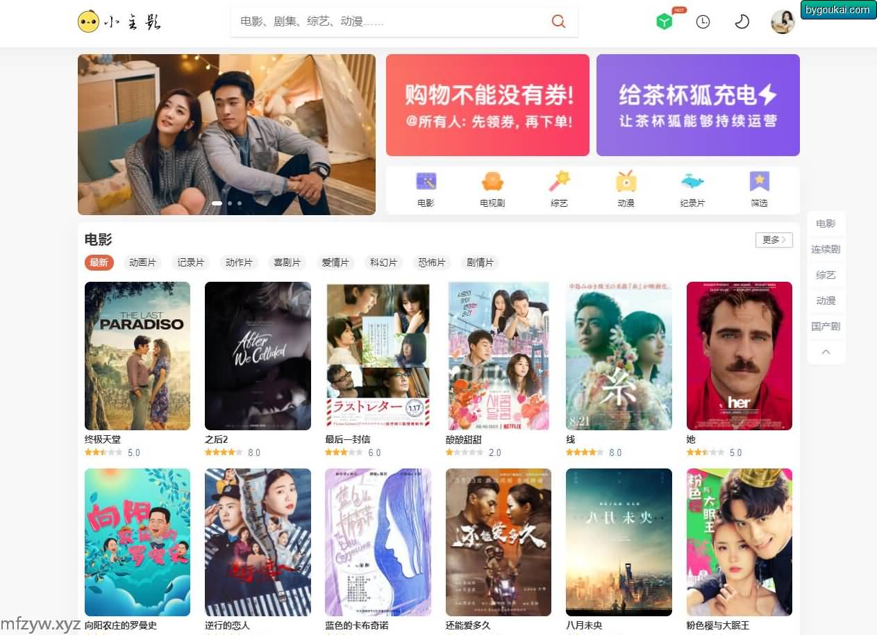 核心功能:首页动态加载,模板控制后台,懒加载,搜索历史记录,播放历史记录,影片评论,主题颜色切换