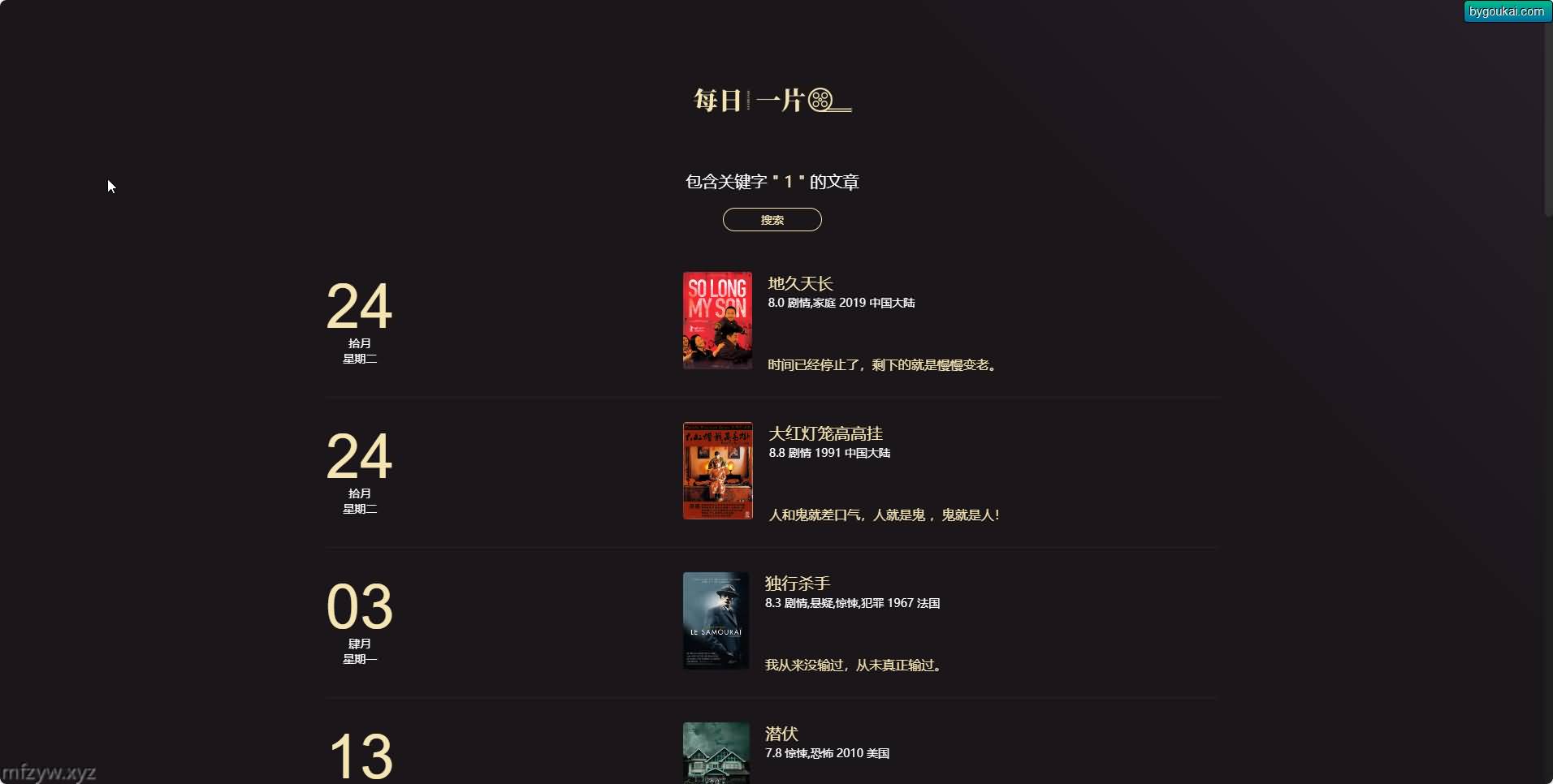 本主题的样式是模仿的此刻电影日历,我在很早以前写过一个单页,每天随机一部电影,显示简介和海报,用来配合wallpaper engine定制桌面的,有个朋友后来提到我这个单页和此刻电影日历很像,我一看,觉得这个样式很不错,就把其他页面也借鉴了一下,来完善一下网站。正像前面说的,这是一个专门用来分享电影的主题,所以有一定的局限性,功能也相应的有针对性。