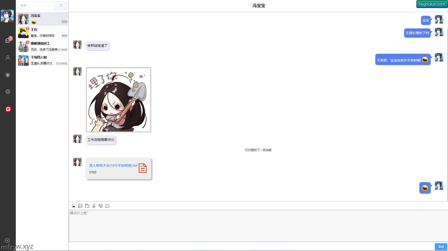 盒子IM是一个仿微信的聊天工具。后端采用springboot+netty实现,web端使用vue,移动端使用uniapp,支持私聊、群聊、离线消息、发送图片、文件、语音、emoji表情、视频聊天等功能。/即时通讯