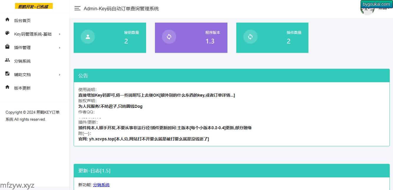 功能简介:主要是为卖一些特殊虚拟物品的商家提供(其实作者也不太确定)同时额外附带了插件功能(网站授权)
