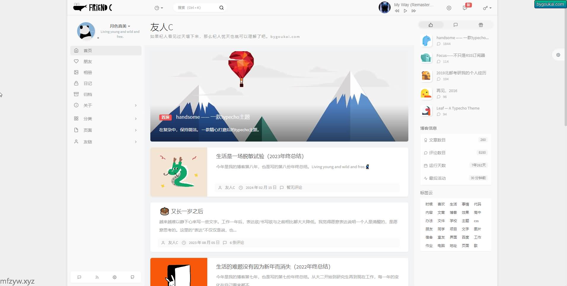 社交功能极丰富:目录、灯箱插件、“热门文章”、“最新评论”、“随机文章”、“标签云”、短代码高亮文本、音乐播放器等等