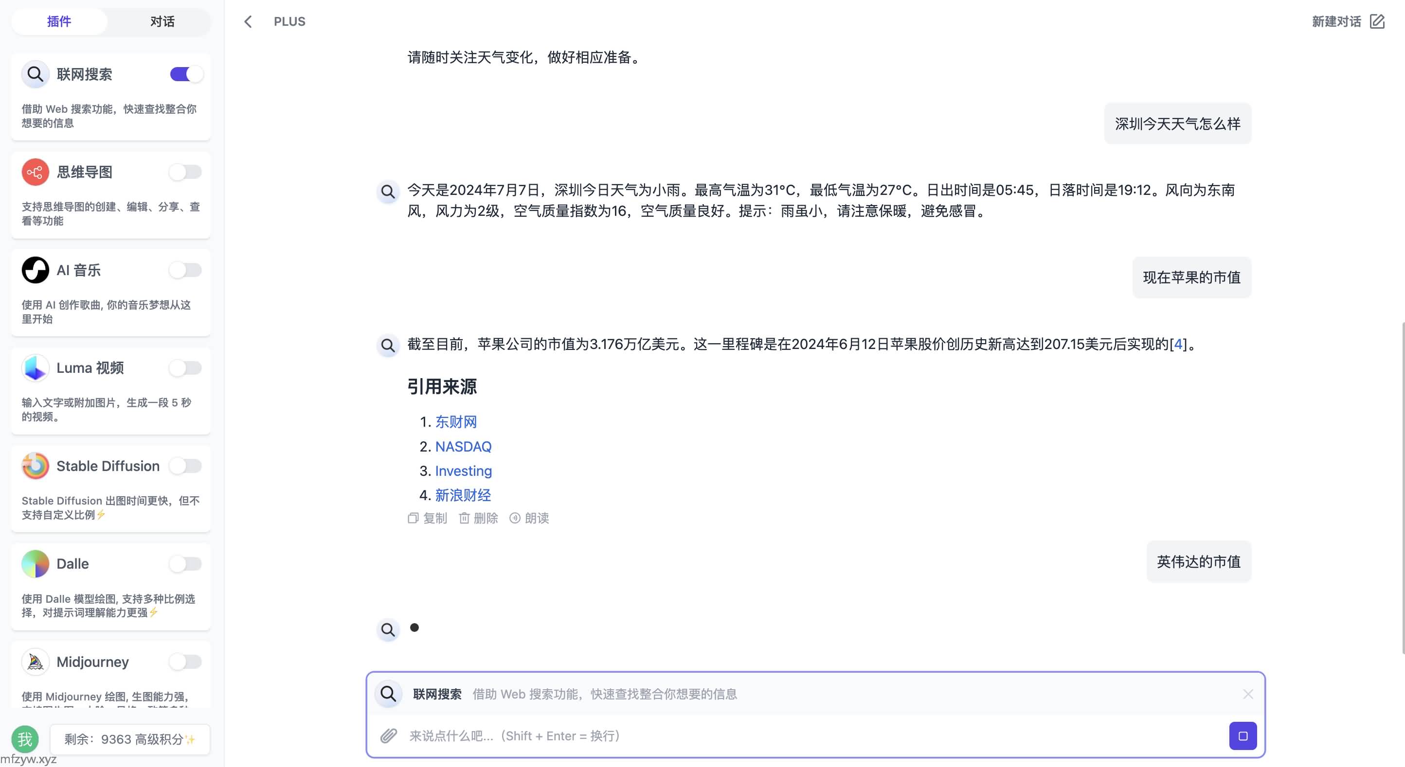 联网搜索:对接插件系统,拓展 AI 功能边界。
