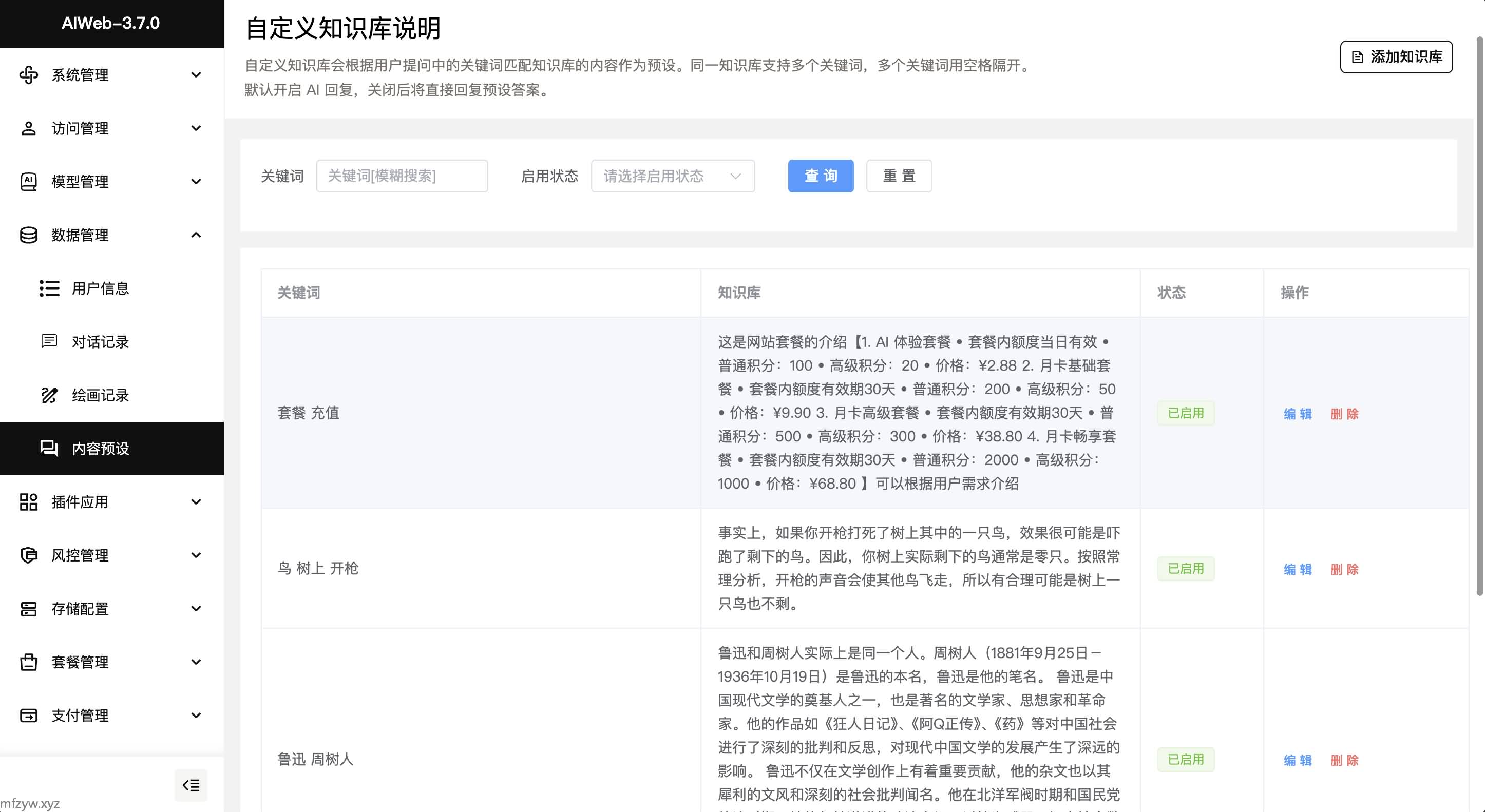 - 知识库预设