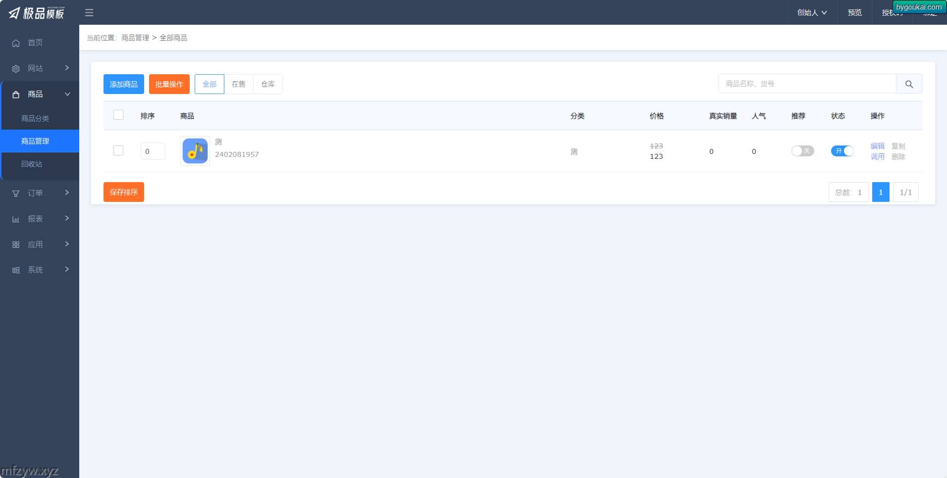 支持商品规格、订单短信提醒,订单提交限制,站外调用, 批量发货/导出,数据报表,物流轨迹、免签支付等。