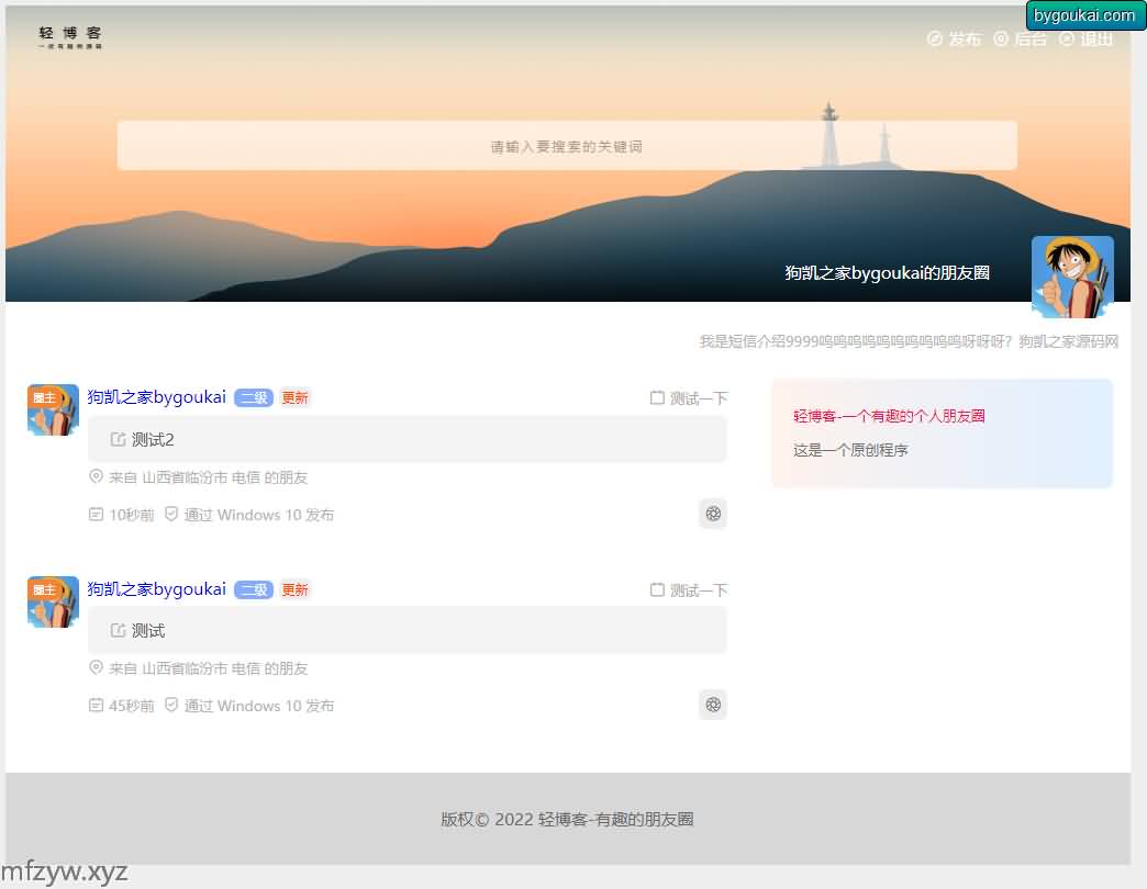 轻博客-有趣的朋友圈-仿朋友圈类型的个人博客,带用户和搜索!