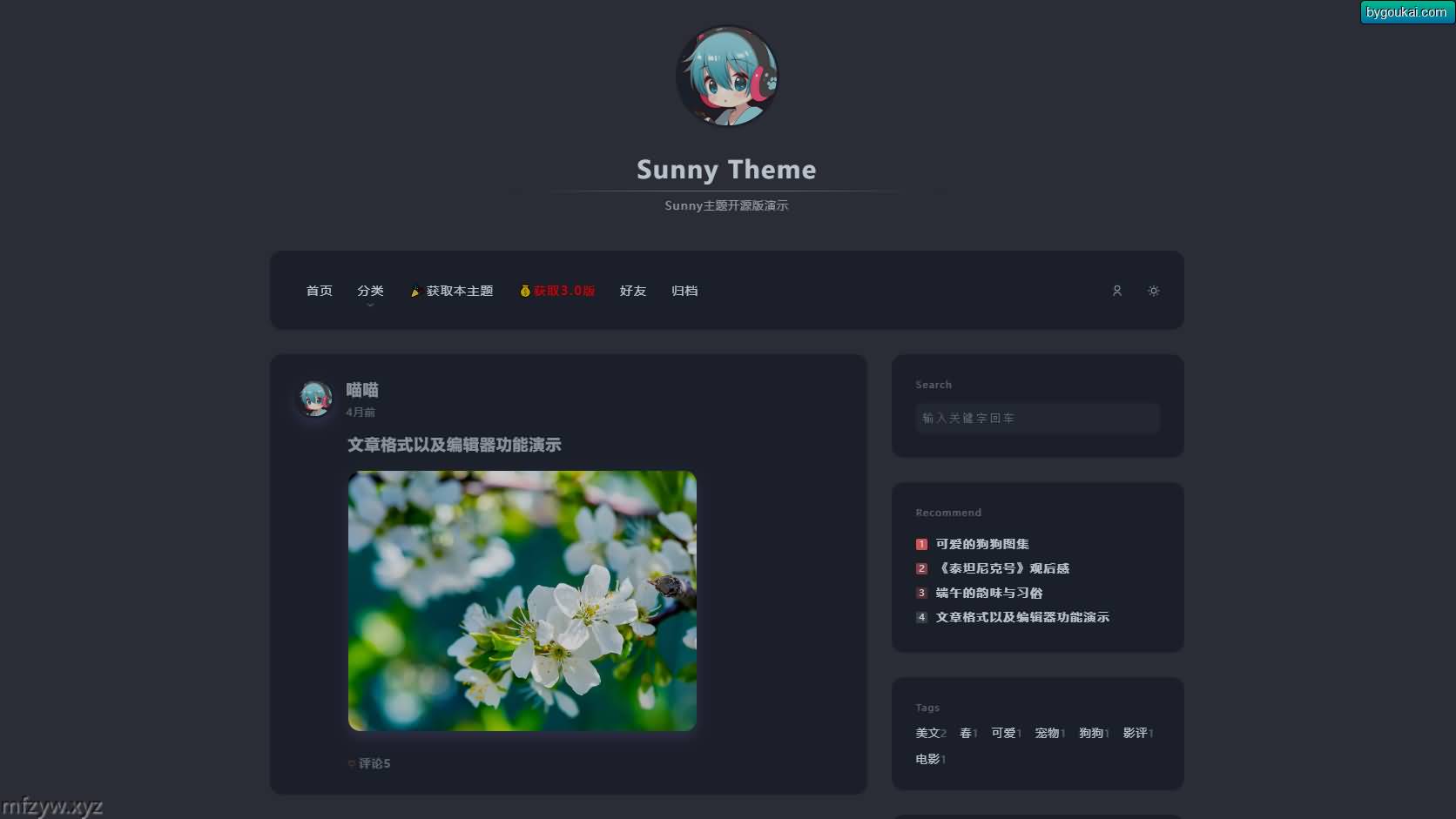 - 主题支持昼夜双色,支持自动昼夜切换,以及用户cookie记忆。