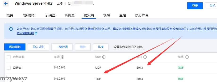 如果端口不通过,则在服务器内,防火墙,出入站规则里,打开对应端口。
