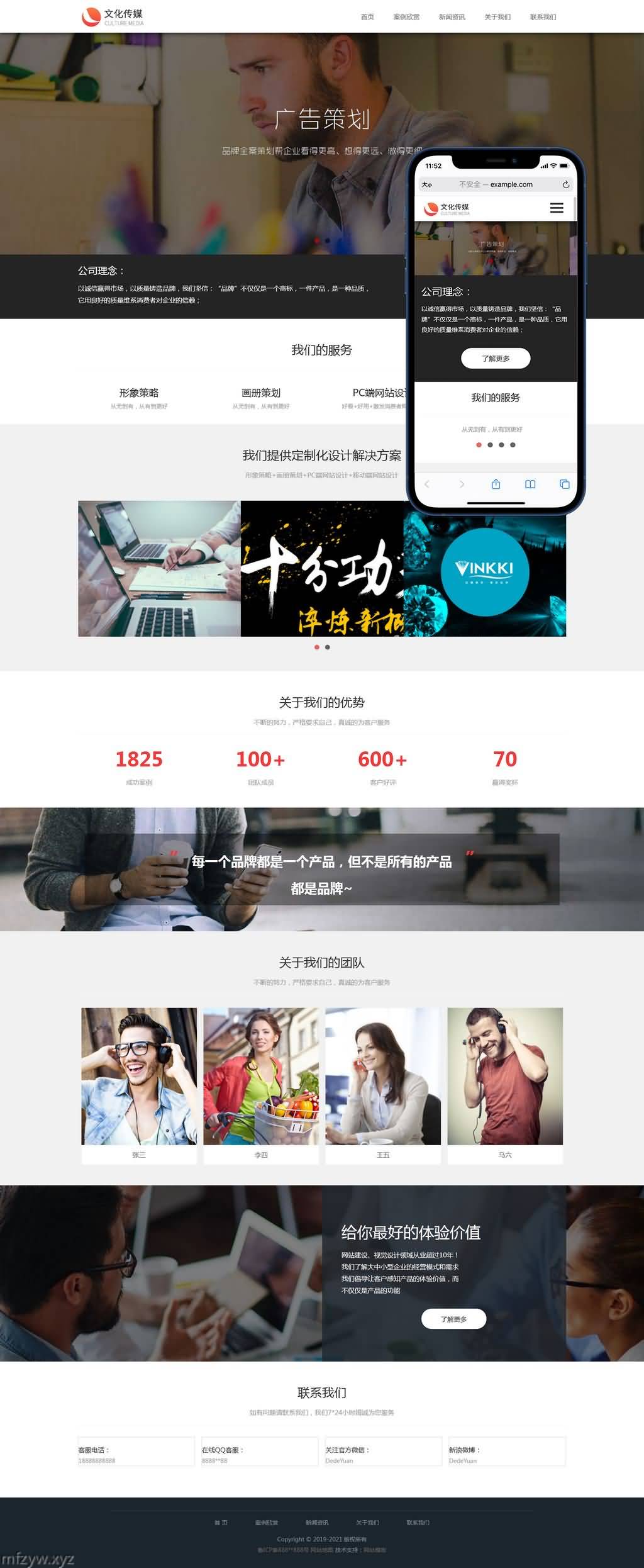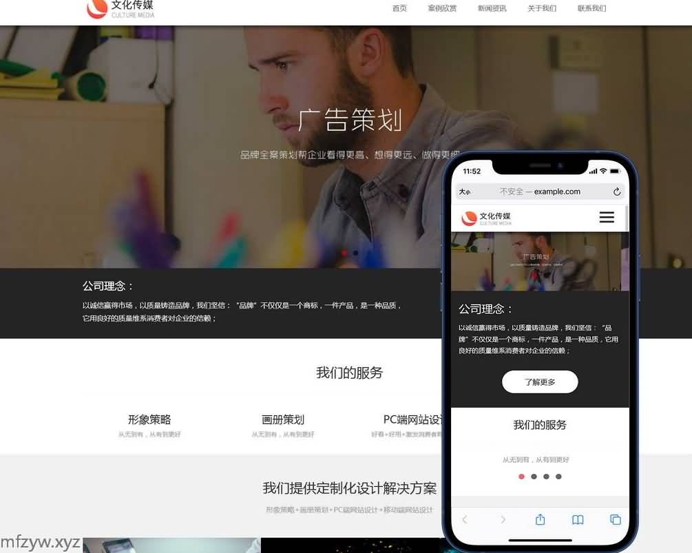PbootCMS内核开发的模板,该模板属于广告策划、营销公司、文化传媒、品牌设计、广告公司类企业使用!