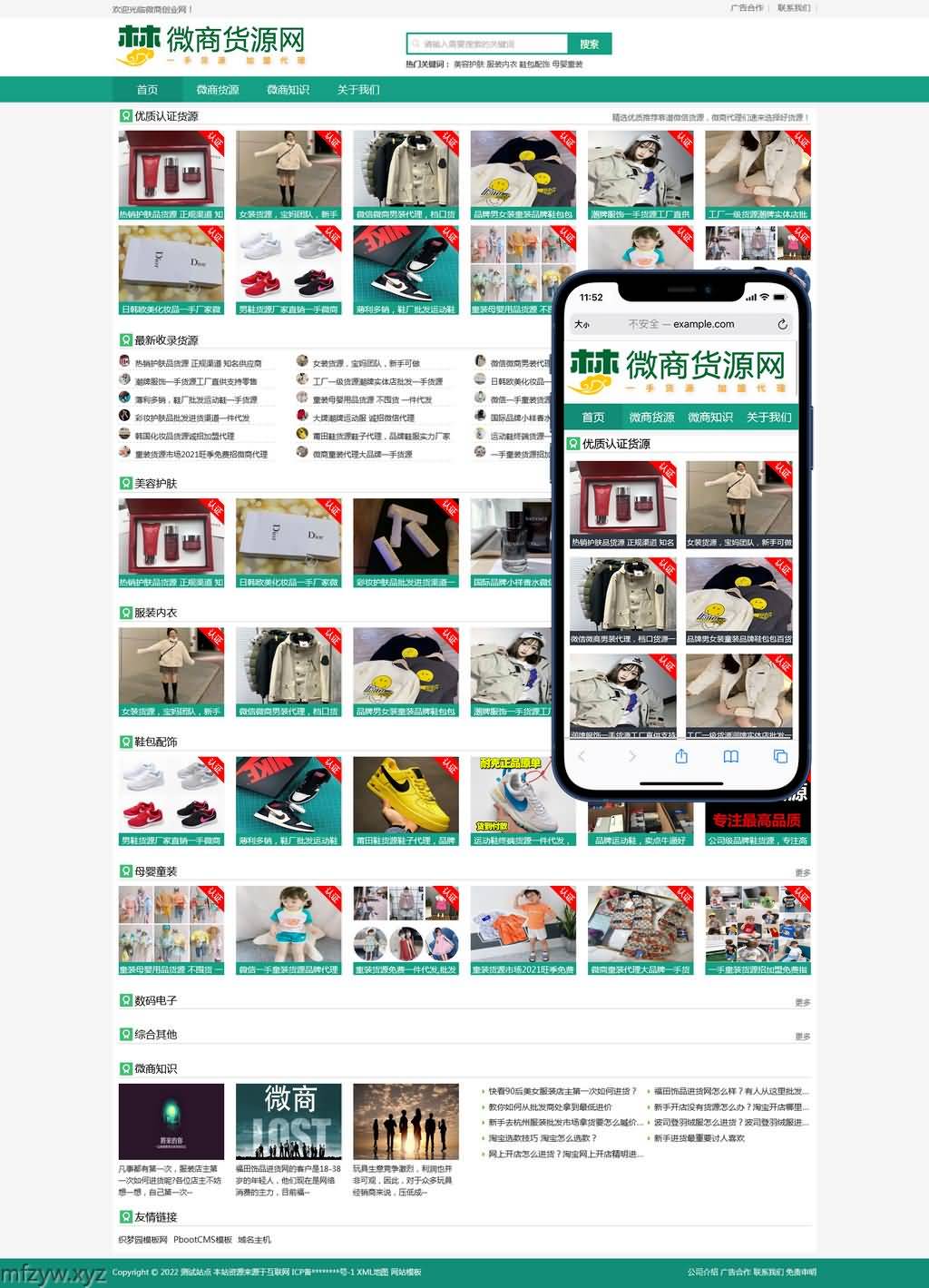 绿色资讯微商货源微商资源(自适应手机端)HTML5网站pbootcms模板