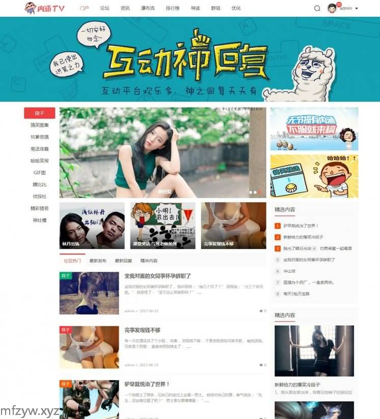 内涵TV段子+手机版模板,包含“电脑板” 和 同步“手机版”,整体布局排版采取了简约而不简单的设计理念,功能齐全,创造空间巨大;