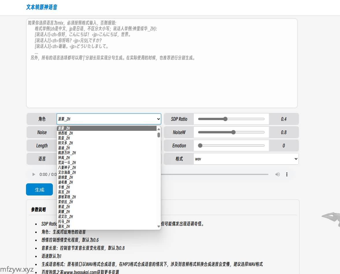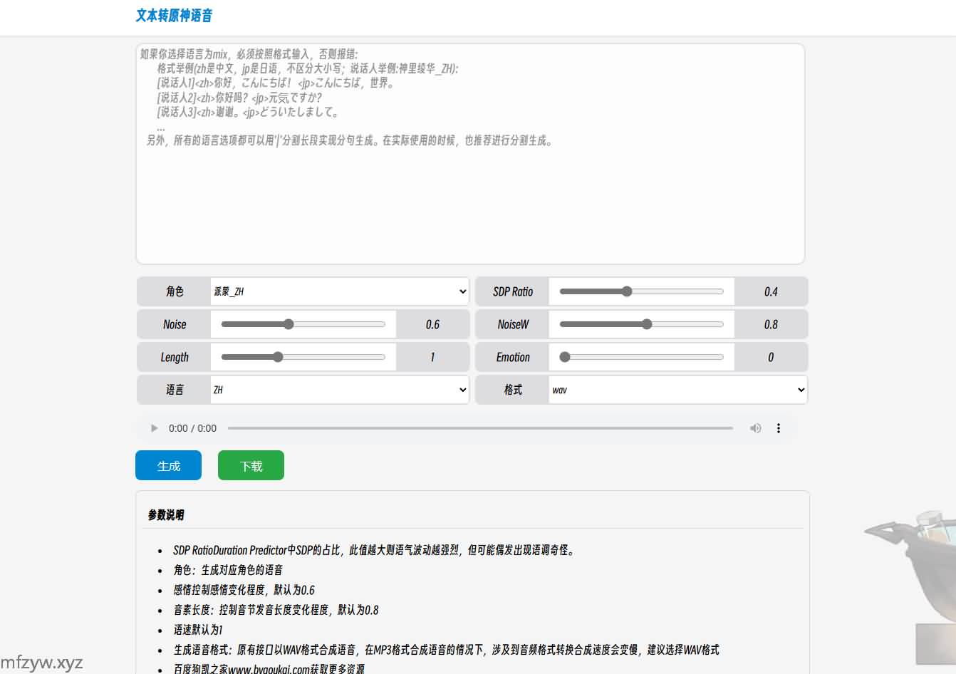 免费资源网网站源码2024-08-16 在线原神配音网站源码,文本转原神语音【原神x星穹铁道】 在线原神配音网站源码,文本转原神语音【原神x星穹铁道】 里面自带的api接口,失效的话替换别的就行百度搜 在线原神配音网站源码,文本转原神语音【原神x星穹铁道】[mfzyw.xyz免费资源网].7z https://www.123pan.com/s/ATShTd-gBzQH 本站所有课程资源均为用户上传,如有侵权,请联系邮箱提供相应材料,我们会尽快删除免费资源网 » 在线原神配音网站源码,文本转原神语音【原神x星穹铁道】
