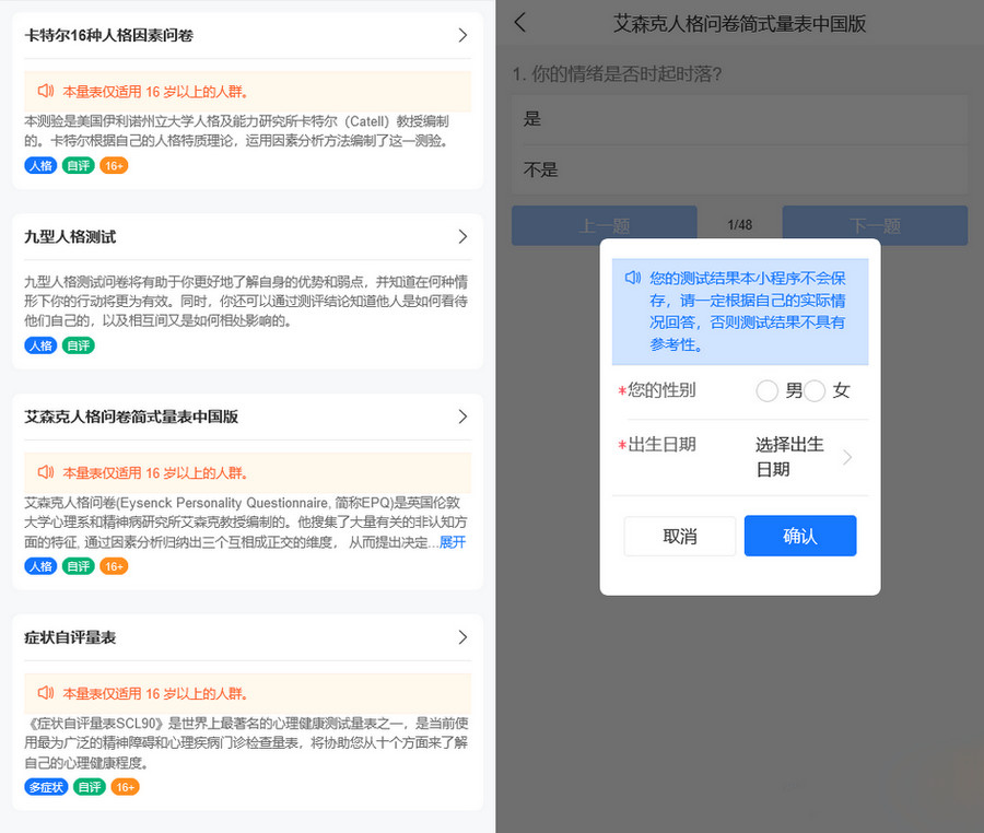 React心理健康测试网站源码,帮助需要的人更好地了解自已的心理健康状态和人格特征。本模板提供了一人最小