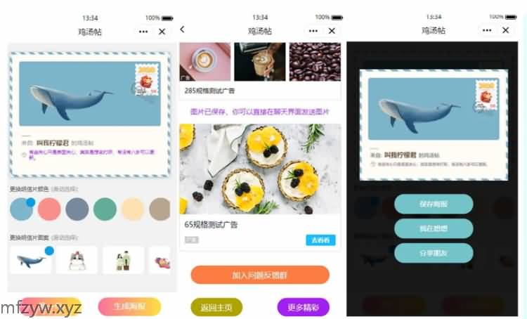 可以自定义卡片内容图标、邮票等元素,QQ微信小程序都可以直接使用,