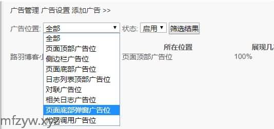 可以设置广告名称、广告位置、广告展示几率(设定该广告在一个广告位有多个广告的情况下出现的几率)