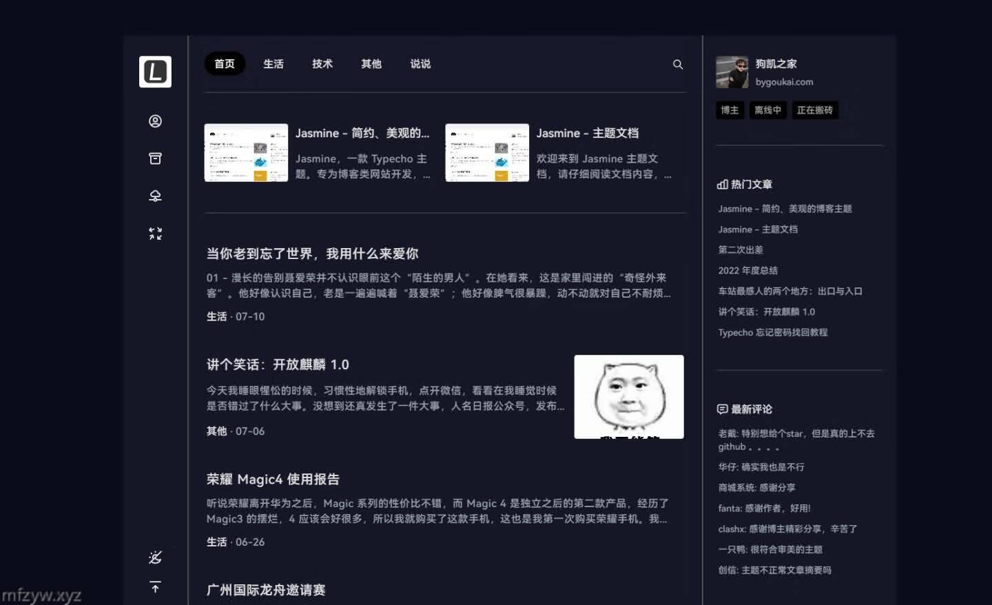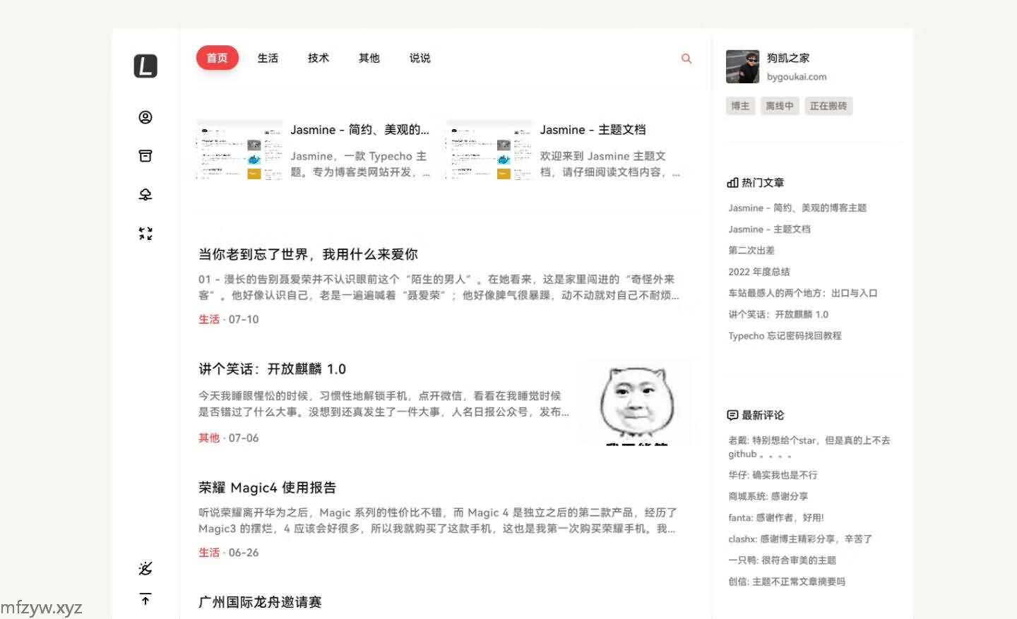 Jasmine 是 Typecho 的一款主题。专为博客类网站开发,在简洁的基础之上,尽量体现出精致与美观。主题整体采用响应式设计,在移动端也有不错体验。除此之外,主题也针对 SEO 、夜间模式、代码高亮等内容也进行了针对性优化,使其简洁但不简陋。