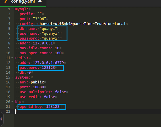 修改成自己的 redis是一定要安装的 openid先配置好以后用的到