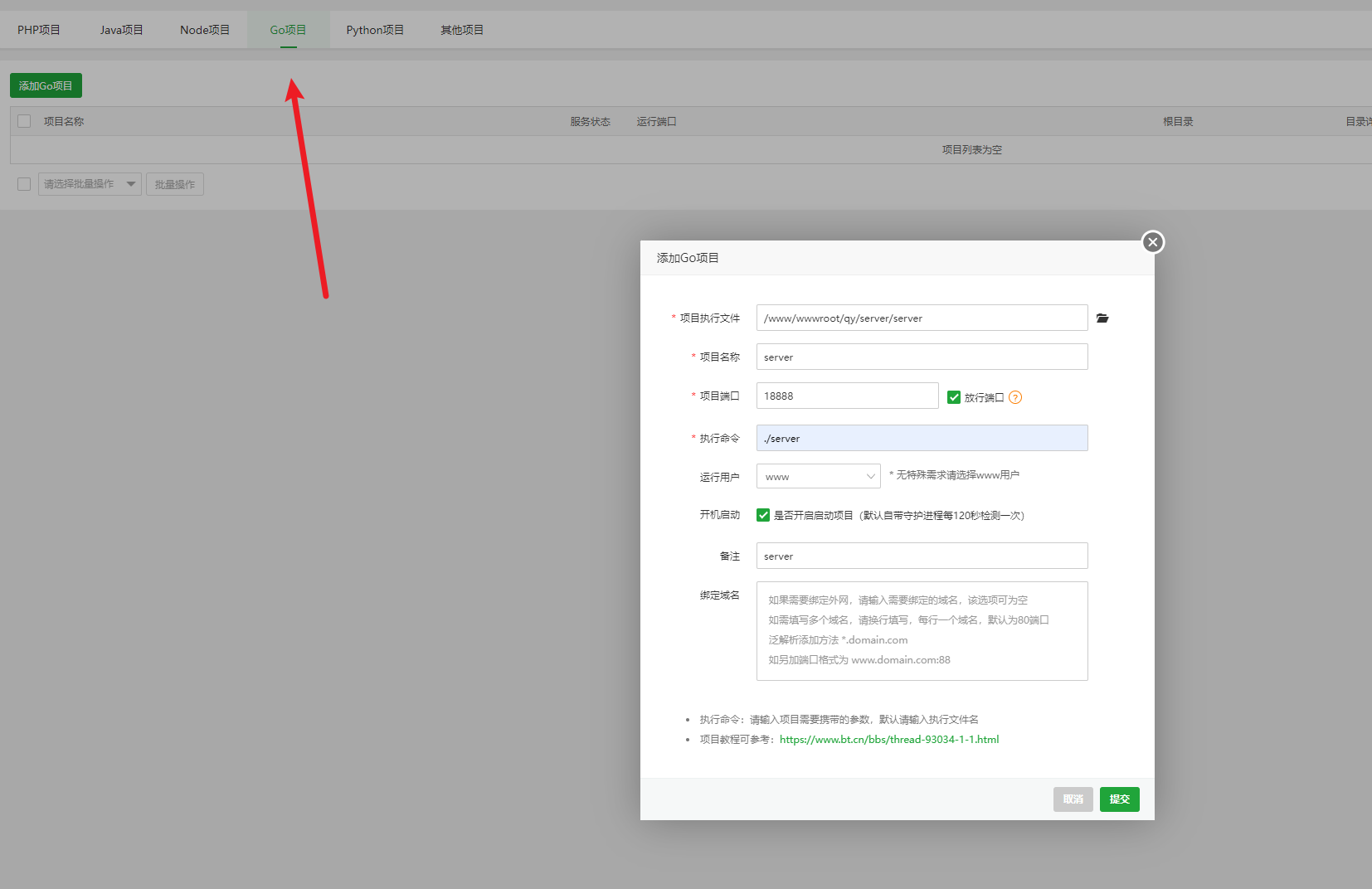 这个是go项目的 切记不要加反斜杠/