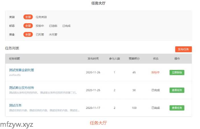 - 雇主发布悬赏任务(后台可设置是否强制积分托管,可设置手续费,可设置是否仅VIP可发布任务)