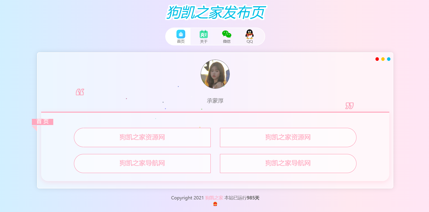 免费资源网网站源码2024-08-16 一款超级好看的网站发布页,个人导航页个人主页 上传到网站根目录就行 如果要上传到其他目录自行研究 一款超级好看的网站发布页,个人导航页个人主页[mfzyw.xyz免费资源网].7z https://www.123pan.com/s/ATShTd-uBzQH 本站所有课程资源均为用户上传,如有侵权,请联系邮箱提供相应材料,我们会尽快删除免费资源网 » 一款超级好看的网站发布页,个人导航页个人主页