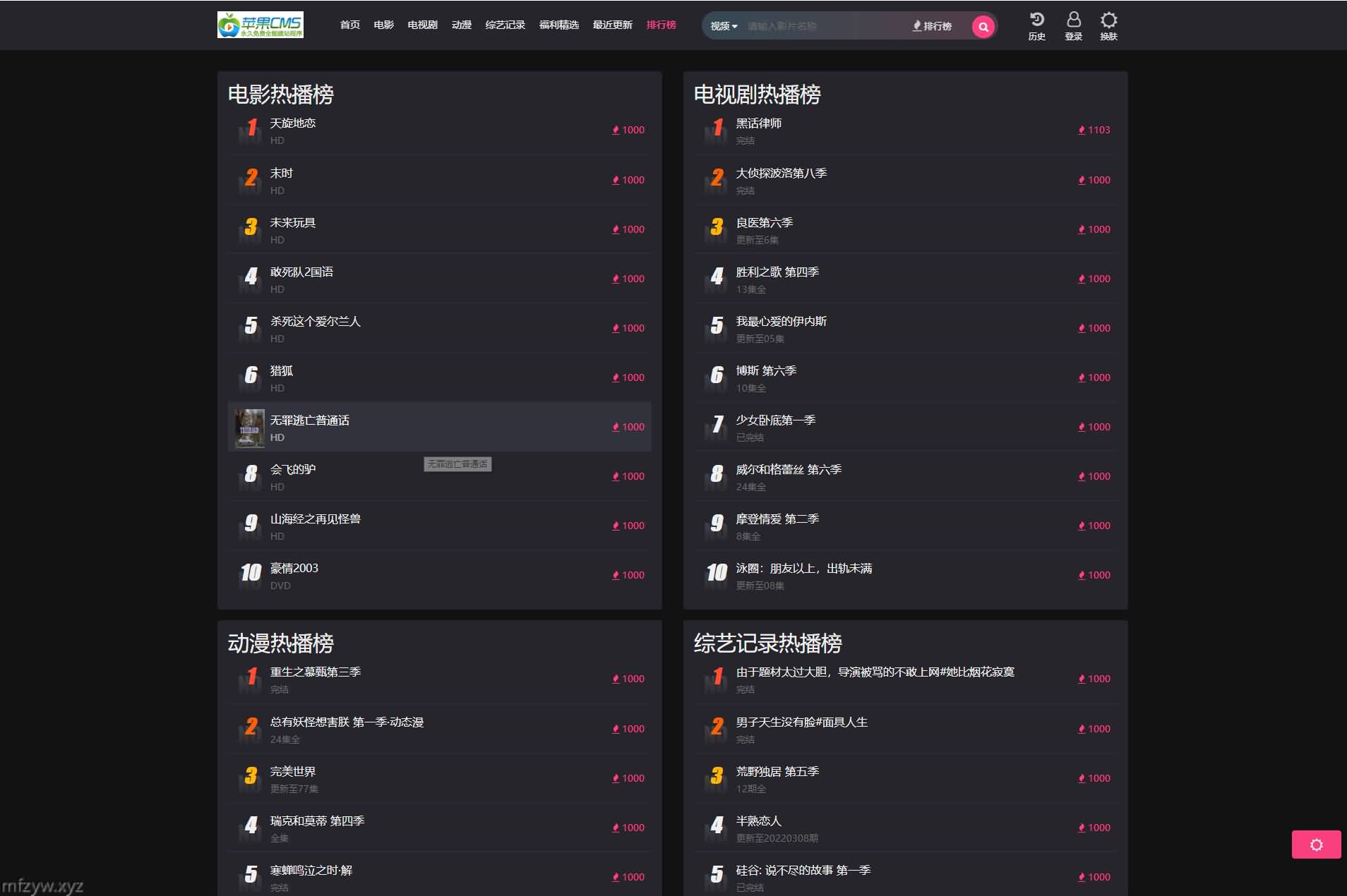 2023全新仿短视影视模版源码 PC H5自适应 明暗双皮肤 苹果CMS系统
